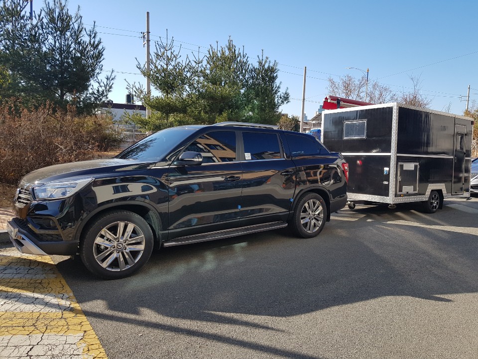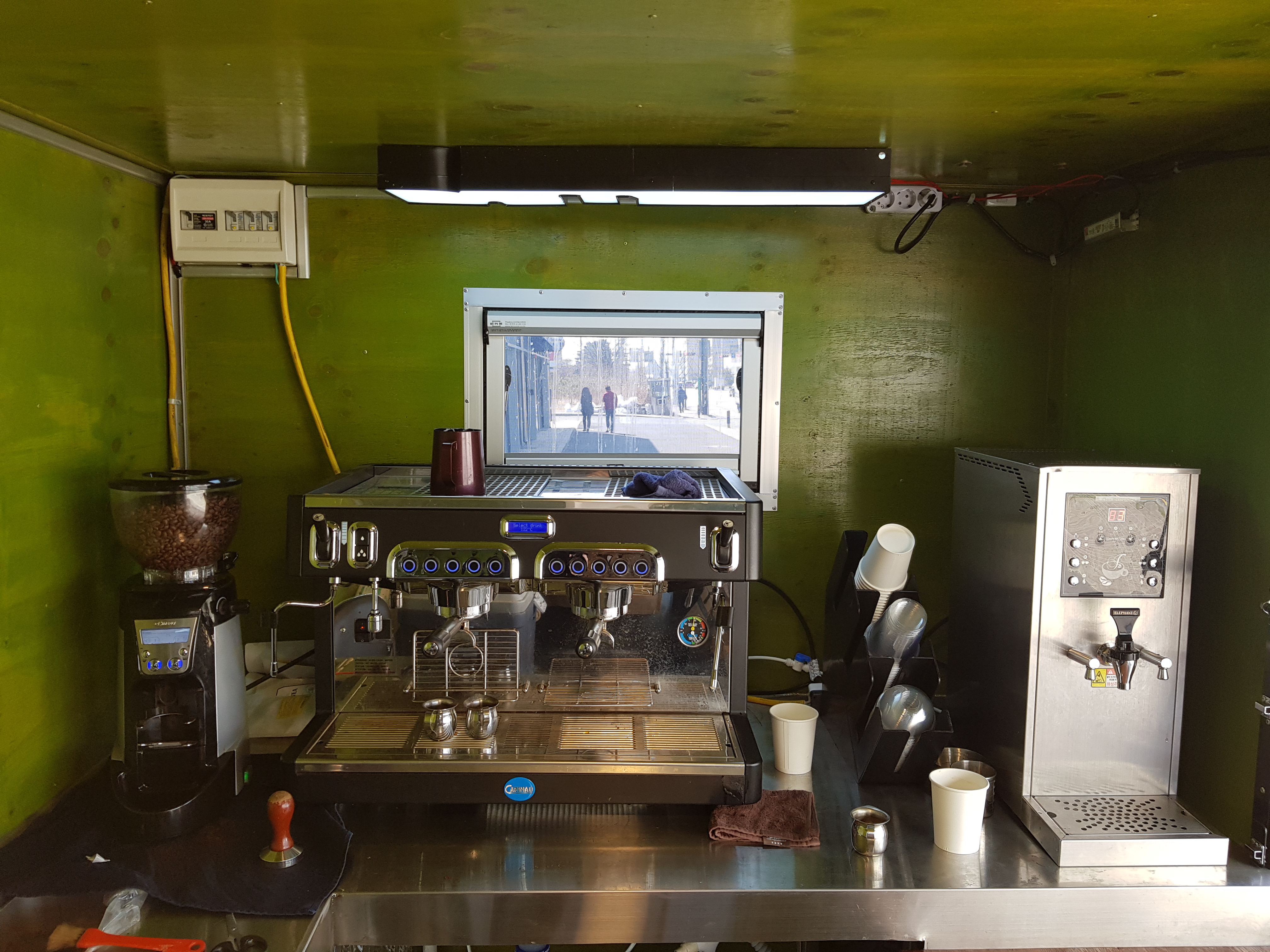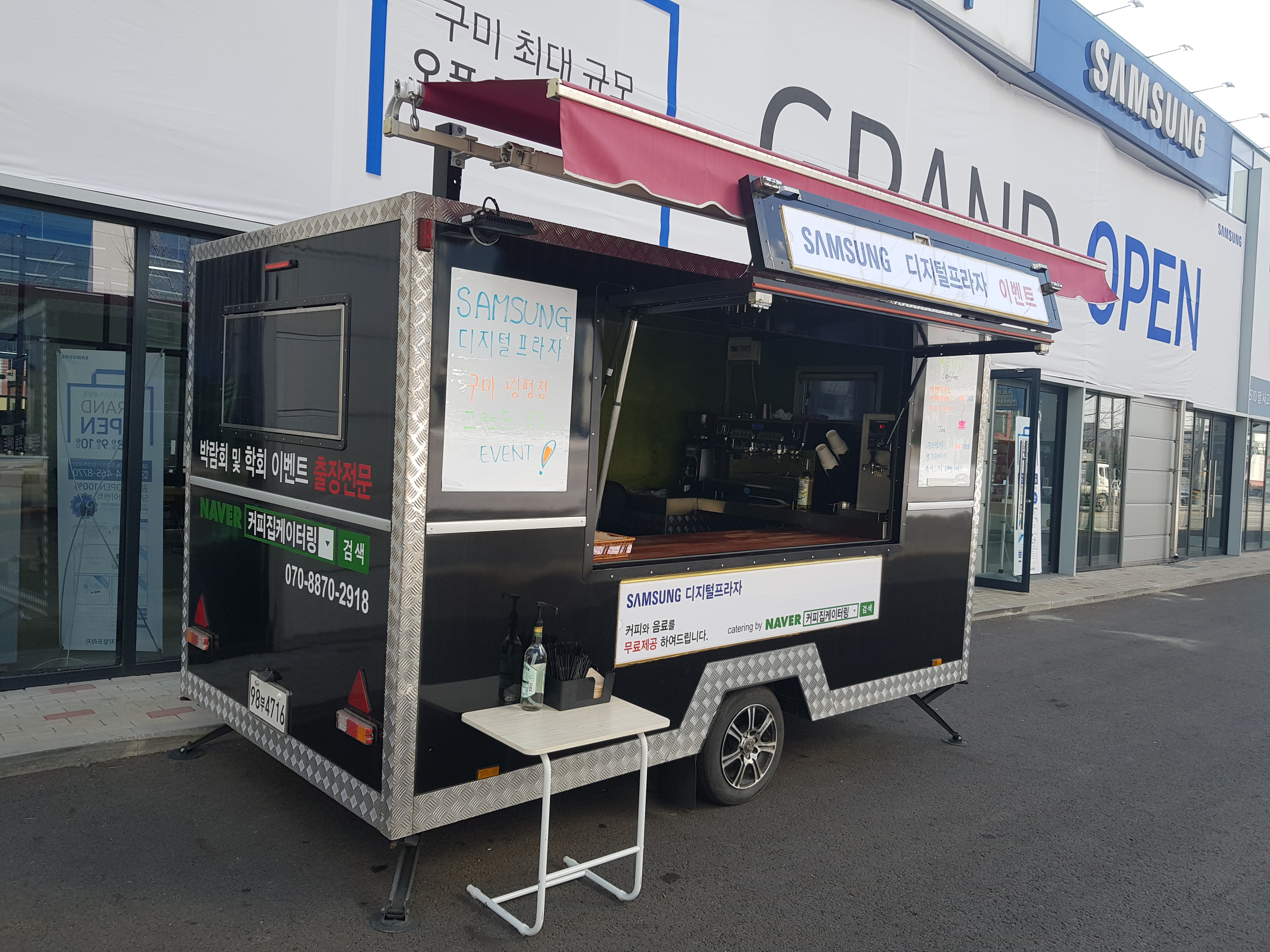 트레일러의 정면에 커피기계및 각종 전기를 많이 쓰는 걸로 자리를 잡고