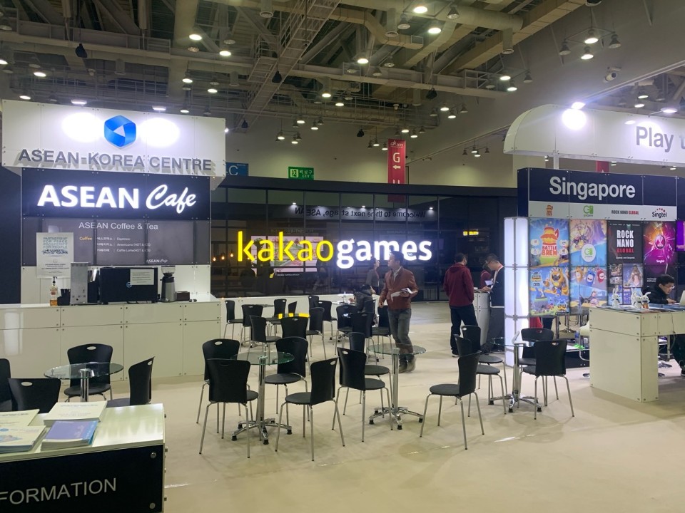 부산 벡스코 에서 가장큰 행사로 제1전시관과 2전시관을 동시에 진행하는 행사는 지스타 밖에없는 행사로 가장큰 규모의 행사입니다. 벡스코 에서 같이 진행을 하게된 업체는 한-아세안 업체로 작년에 이어 올해도 같이 진행을 하였습니다.