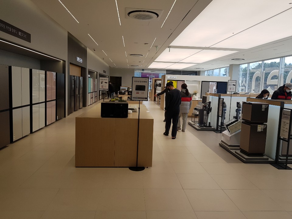 구미본점은 총 3개의 층으로 되어있었습니다. 우선 1층입구는 유아들이 놀수 있는 공간과 갤럭시 시리즈를 포함한 전자제품등이 있었으며, 2층에는 세탁기, 냉장고등의 가전제품을 진열을 하였습니다. 3층은 삼성전자 서비스 입주예정상태였습니다.