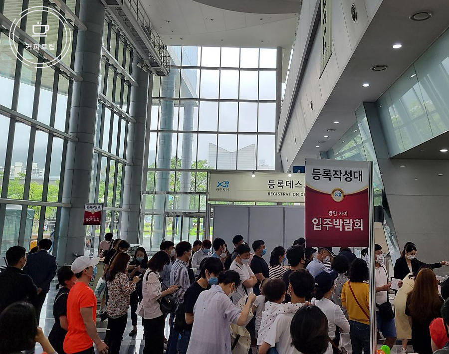 출입부터 코로나19로 인하여 손소독,발열체크, 문진표작성등의 과정을 거쳐서 입장을 하는 이번행사는 1차와 행사때와 마찬가지로 가전회사, 줄눈, 이사, 중문기타업체들이 총 출동을 하여 광안자이입주민들의 입주준비를 같이 하였습니다.