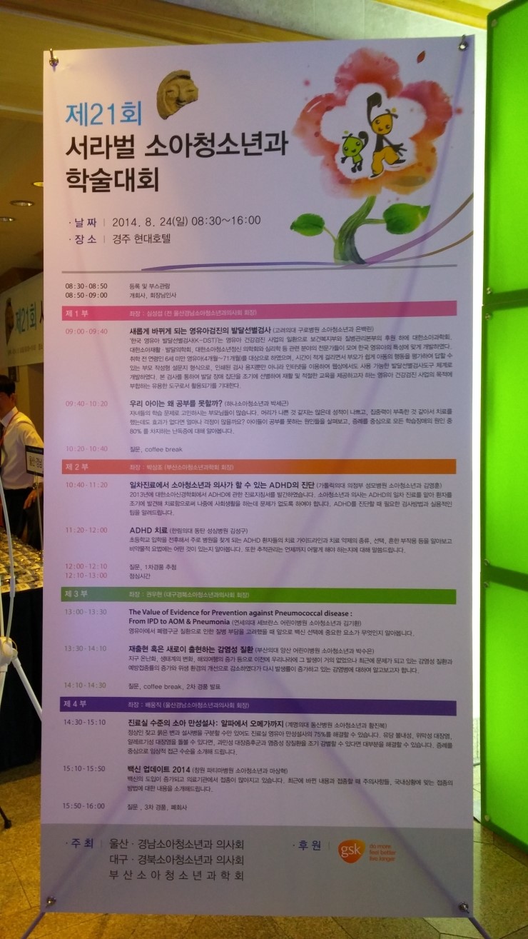 2014년 8월24일 경주현대호텔 에서 제 21회 서라벌 소아청소년과 학술대회가 있었습니다.