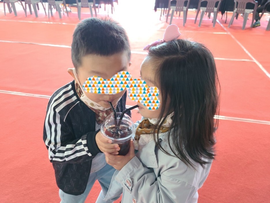아이스 음료를 아이두명이서 나누어 마시는 모습에 완전 반했다는 ㅎㅎ