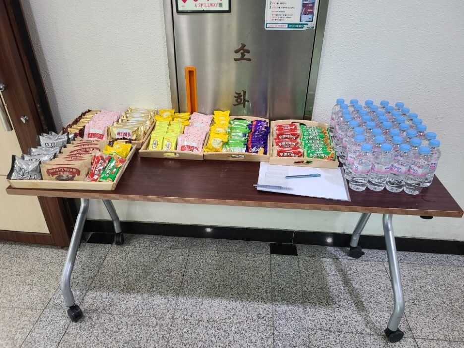 주최측에서 준비한 각종 쿠키와 물도 한쪽자리에 잡아 행사 진행을 잘 하였습니다.