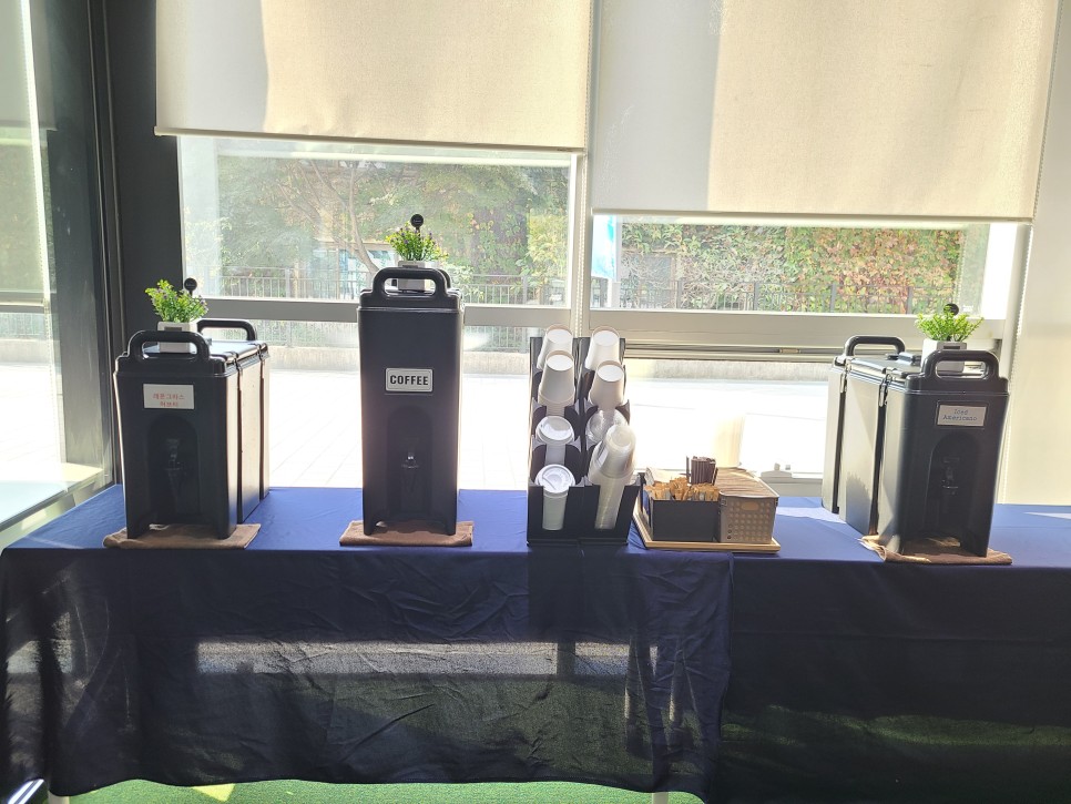 핫아메리카노, 아이스아메리카노, 레몬그라스허브티 메뉴로 구성을 하였으며, 주최측에서 요청한 쿠키도 정성스럽게 셋팅을 하였습니다.