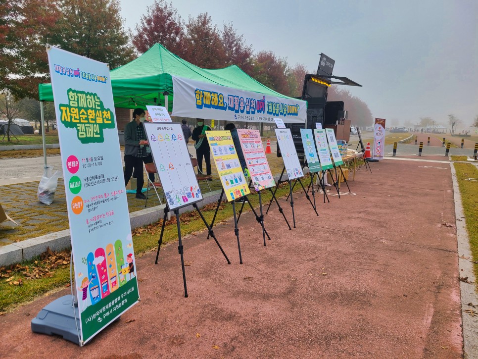 자원순환에 대해서 설명을 드리고 퀴즈도 내고 하면서 자유롭게 참여를 하게끔 행사 진행을 하였습니다.