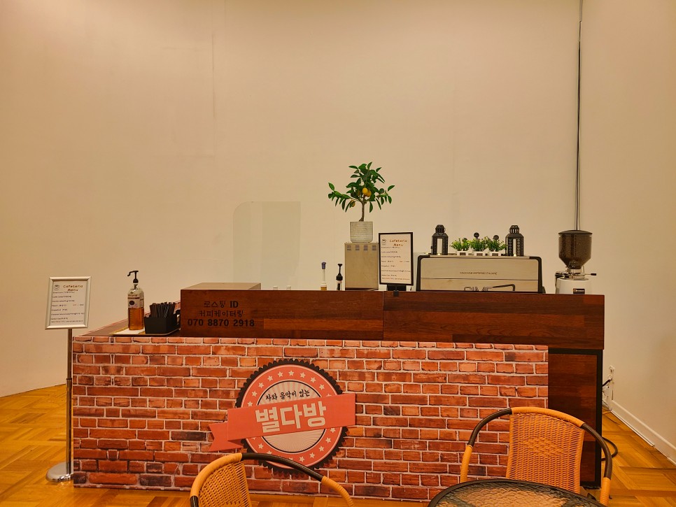 별다방이라고 하여 따로 부스를 만들어 주셨는데 불빛색과 어울렸습니다.