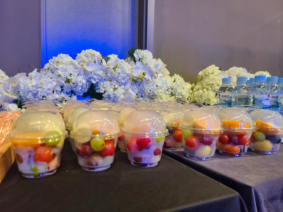 이날 날이 많이 추웠는데 밖에는 거의 영하의 기온 안으로 들어오니 너무 추워 컵과일에 서리가 내렸어여