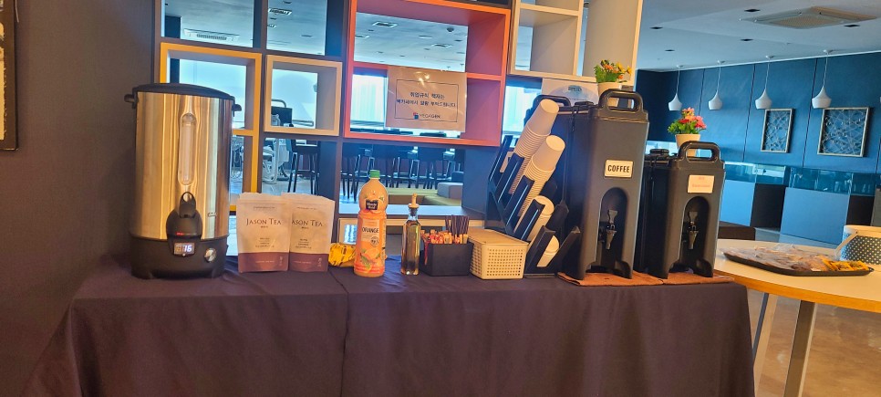 준비한 메뉴는 아메리카노1.5통과 허브티, 쥬스, 보온통을 준비를 하였습니다.