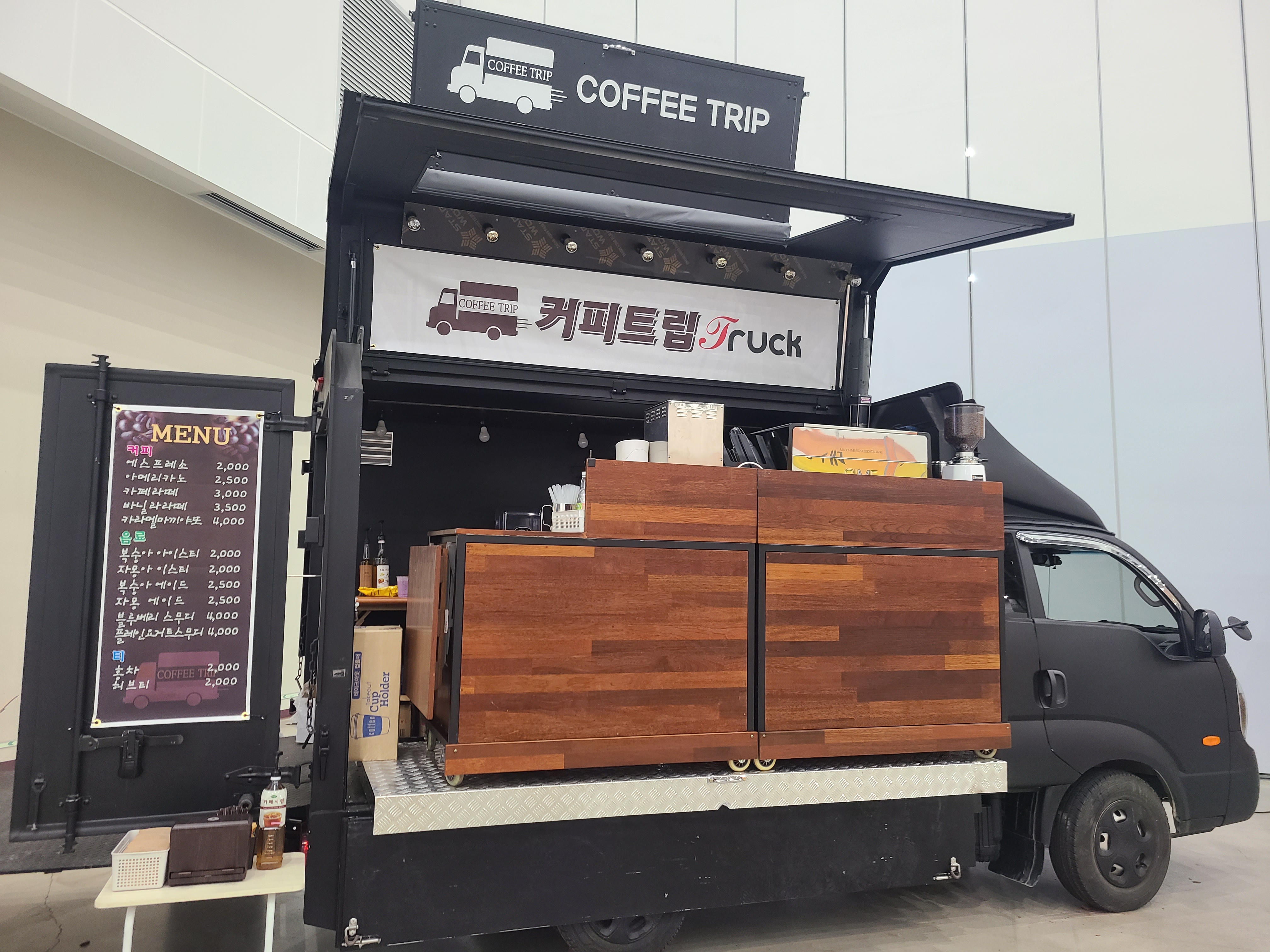 판매대가 바로 앞에 커피트럭바로 앞에 자리를 잡아