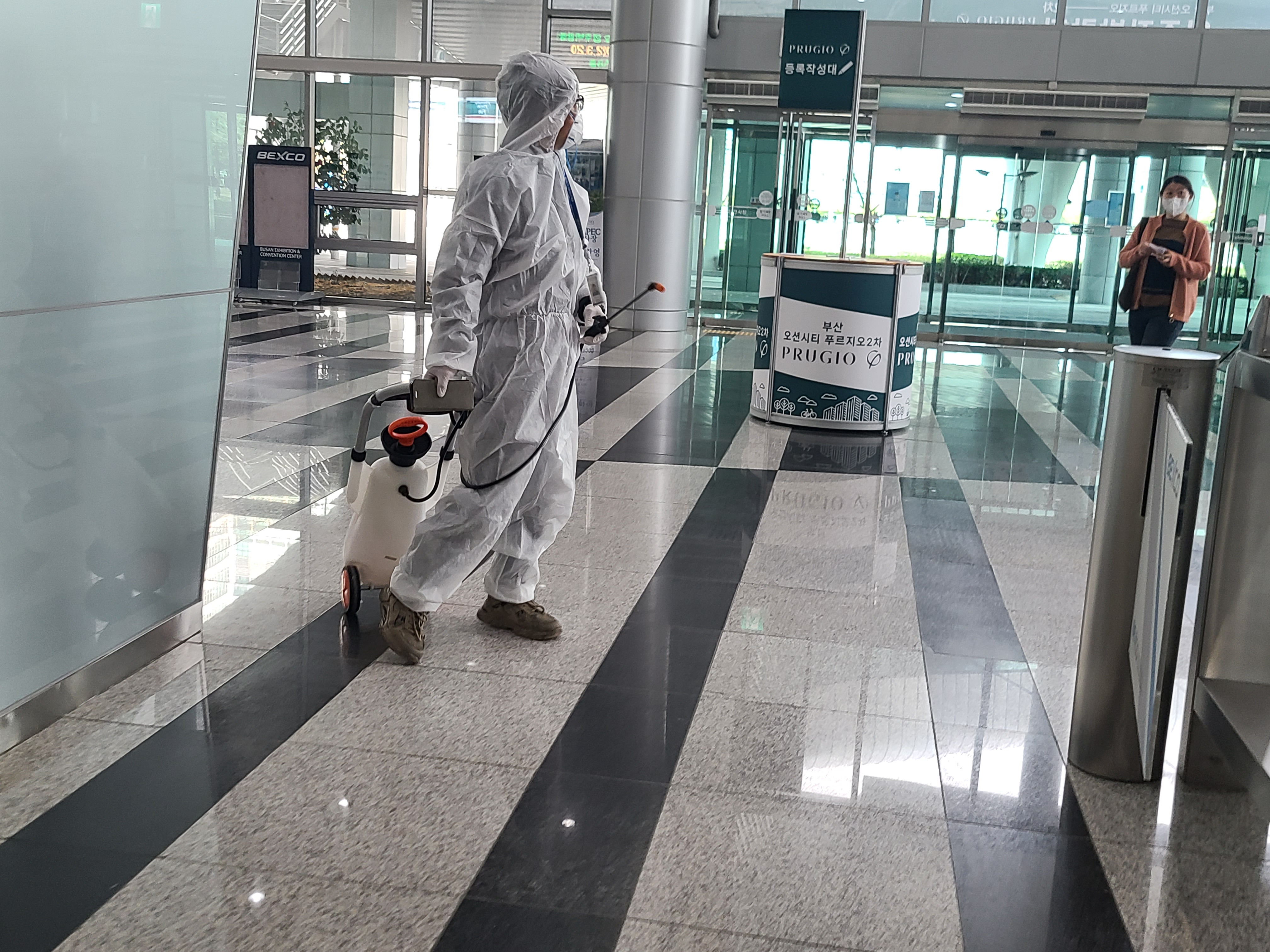 오미크론의 확산세가 무서운 요즘 방역의 최우선으로 하는 벡스코에서 주기적으로 방역소독을 하여 행사 진행에 도움을 주었습니다.