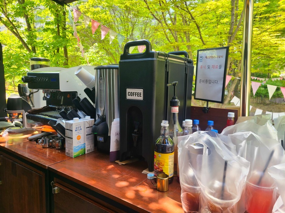 그렇게 커피차 세팅을 위한 전기, 물 등의 공급을 끝내고 이제 커피차 운영을 합니다.