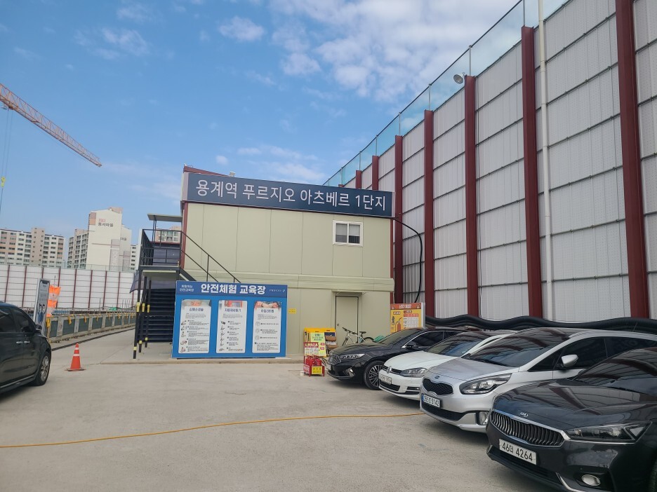 현장을 들어가면서 이게 진정한 현장의 소리이구나~~!! 할 정도로 공사장의 높은 타워크레인, 쉼없이 돌아가는 현장, 그리고 구슬땀을 흘리고 계시는 분들을 보며 시원한 음료를 드려야 한다는 생각으로 바쁘게 셋팅을 완료 하였습니다.