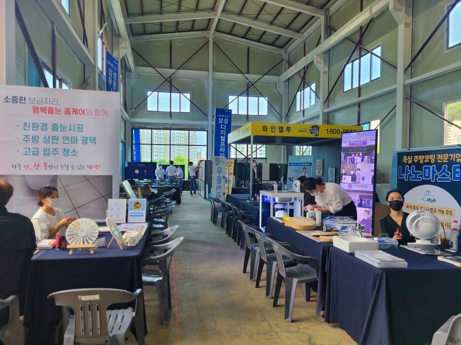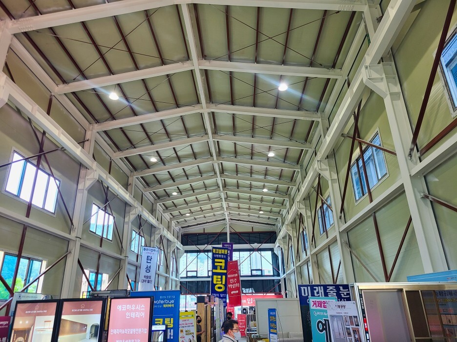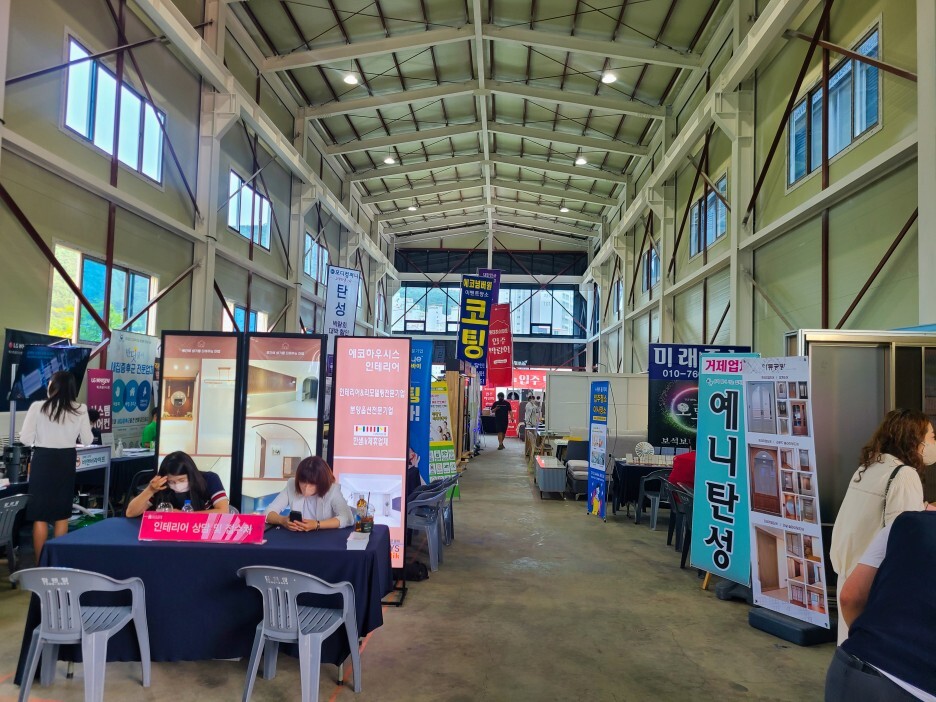 아직 분양이 다 되지 않은 공장에 입주박람회장을 열어서 오시는 입주자 분들에게 입주시 필요한 제품을 소개및 계약을 하는 곳으로 가전업체뿐 집에 입주할때 필요한 모든 업체들이 셋팅을 끝내고 입주자 분들과의 상담 준비에 분주하게 움직이고 계셨습니다.