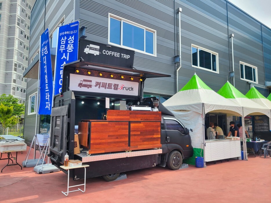 첫날 현수막을 가지고 가지 않아 기존의 현수막으로 운영을 하였는데 둘째날에는 현수막을 바꾸어 달고 위치도 바로 잡고 하여 둘째날 부터 완벽하게 커피차를 운영을 하였던것 같습니다.
