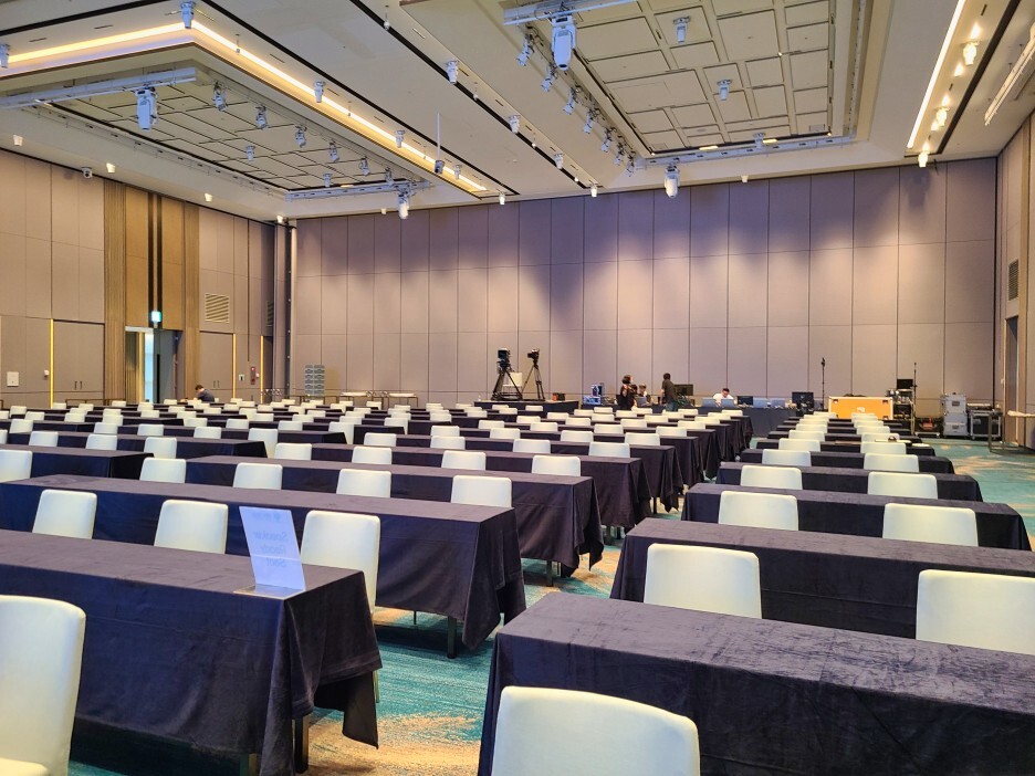 항상 처음 진행하는 장소는 긴장감과 왠지모를 변수를 생각을 하게 되는 것 같습니다 .이번 학회의 셋팅은 학회장을 통과하여 셋팅을 하는 곳으로 바닥이 카페트로 되어 있는 호텔의 특성상 힘을 많이 소모하여 셋팅을 하여 체력적으로는 많이 힘든 행사였습니다. 그리고 학회에 참여하시는 분들이 많아 행사 준비에 만전을 다하다 보니 스트레스도 많았지만, 그로 인해 행사는 잘 진행을 하였습니다.