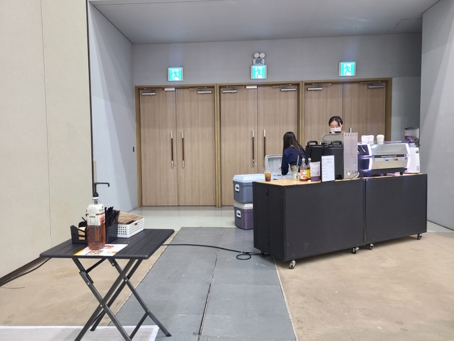 2022년 10월 2~3일까지 부산 벡스코에서 진행하는 두산위브 더 제니스 하버시티 입주 박람회 커피 케이터링이 진행 중입니다.