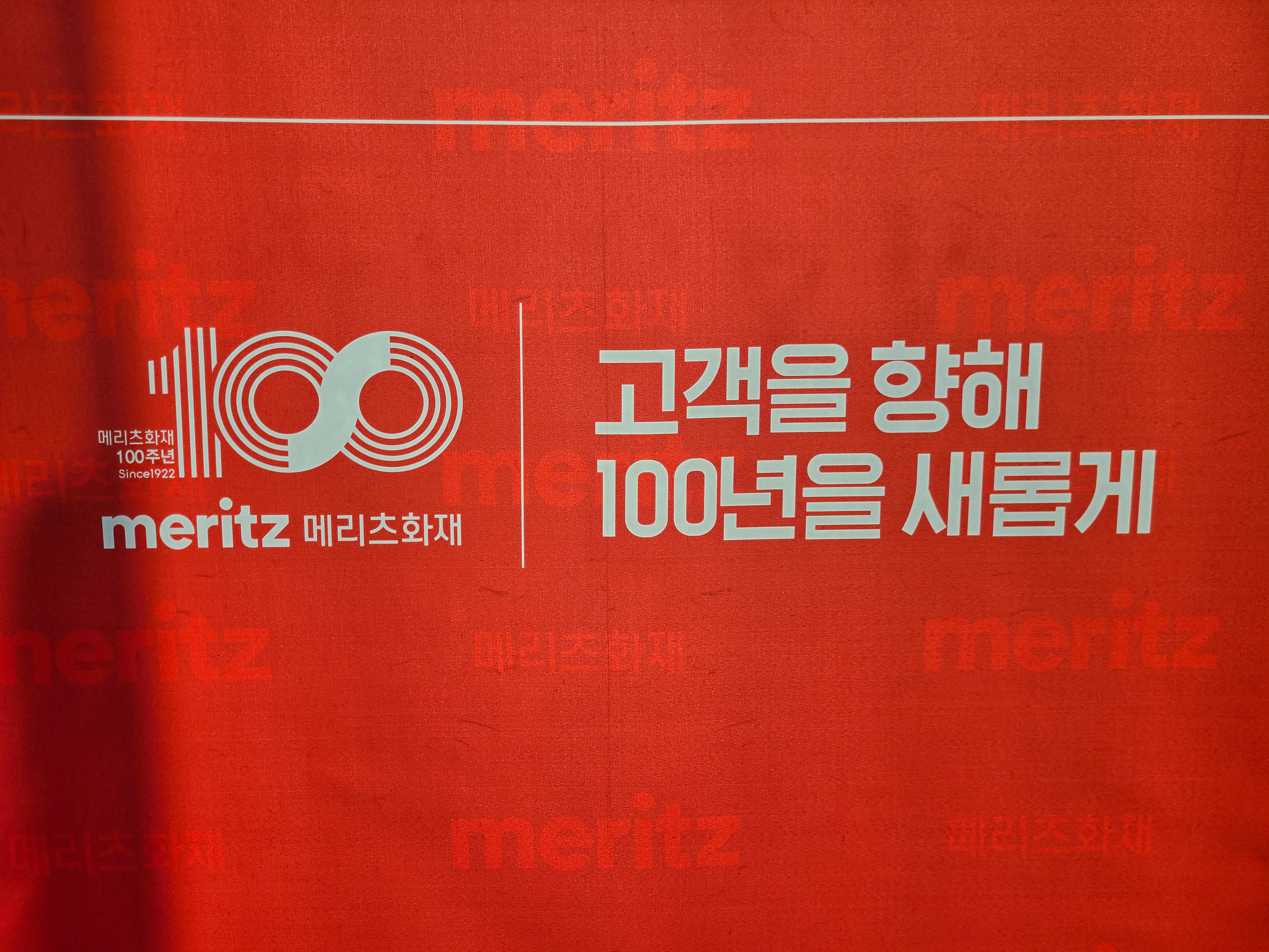 경남 지역의 메리츠 지사 및 식구들이 창원 세코에 총출동한 날로 I Meritz U 슬로건으로 메리츠화재 100년의 시간 "고객을 향해 100년을 새롭게"라는 타이틀로 메리츠화재 식구들의 위한 자리였습니다.