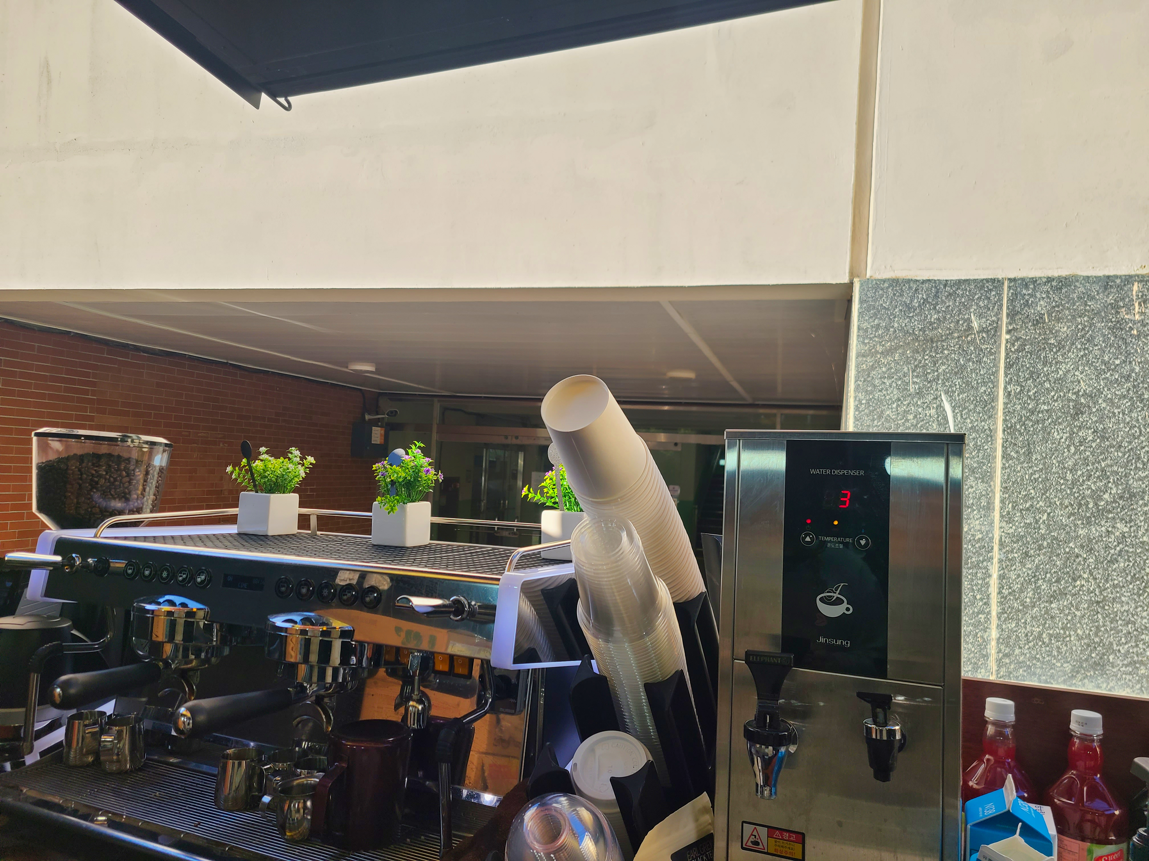 학교 식당 앞에 자리를 잡고 커피 행사를 진행을 하였는데요 조금 비탈진 곳이었지만, 커피차 운영을 하는 데에는 문제가 없었습니다. 아침 08:30분에 시작하는 커피 시간을 맞추어 세팅을 하고 고3 학생을 맞이하는 순간까지 저의 고등학교 생활이 생각될 만큼 학교라는 공간이 가진 무언가 추억의 선물하는 것 같았습니다.