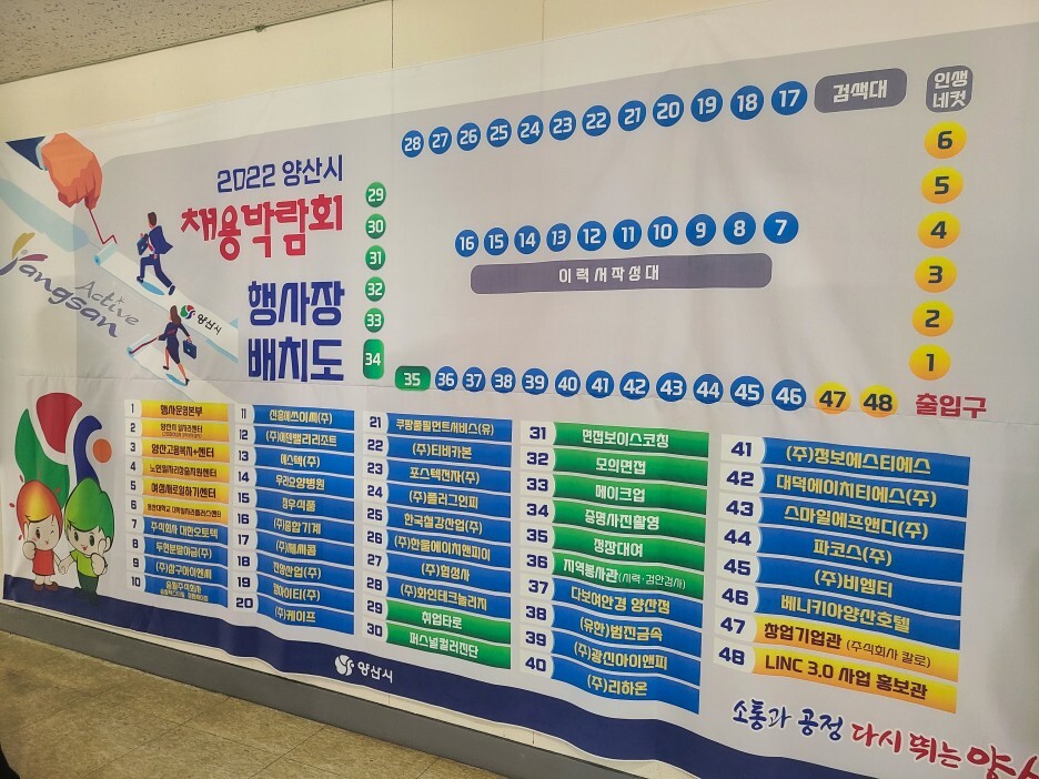 총 48개의 부스로 진행한 이번 채용박람회는 많은 회사들이 참여해 채용면접과 취업상담등을 하는 박람회로 양산시에서 주최하여 진행을 하였습니다.