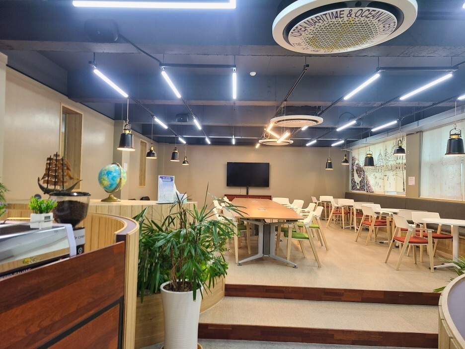 해사교육관에서 진행한 이번 행사장 입구에 셀프 커피 머신과 카페가 있어 카페 분위기가 생겨 더욱 좋았으며, 각 강의실마다 회사 관계자들이 자리 잡고 취업에 관한 면접등의 사뭇 진지한 분위기에서 진행된 행사였습니다.
