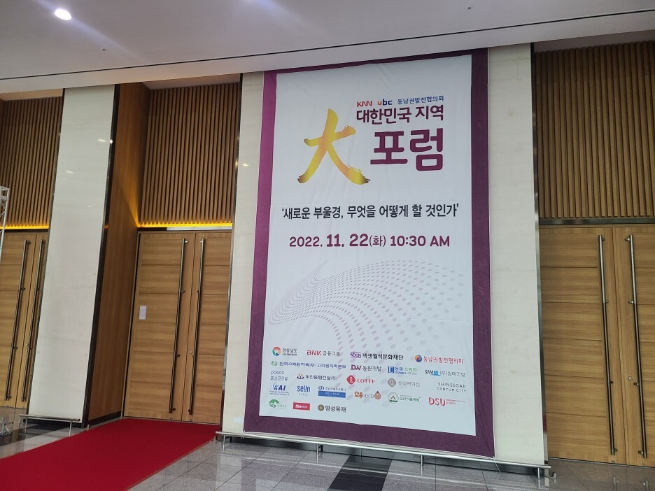 KNN과 UBS에서 후원하고 부울경의 대표들이 다 모여 '새로운 부. 울. 경 무엇을 어떻게 할 것인가' 하는 다소 무거운 주제로 부산시장, 울산시장, 경남 도지사 이렇게 3분을 모시고 방향을 모색하는 포럼이었습니다.