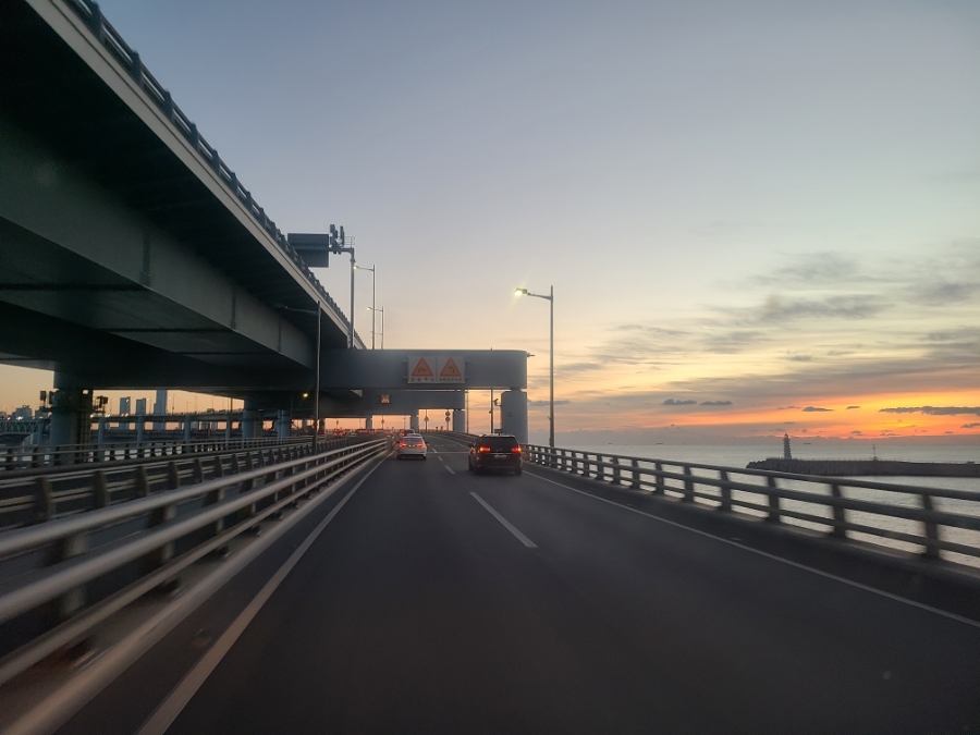 아침 등록시간이 08:00 라서 그전 1시간 전 도착을 맞추어 부산벡스코로 향하는길. 무섭도록 차가워진 공기가 삶의 공허함을 채우는 계절인것 같습니다. 이른 아침에 이곳을 오면 그 시간에 맞추어 해가 뜨는 것을 볼수 있어 참 매력적인 것 같습니다. 비록 일을 할지라도....