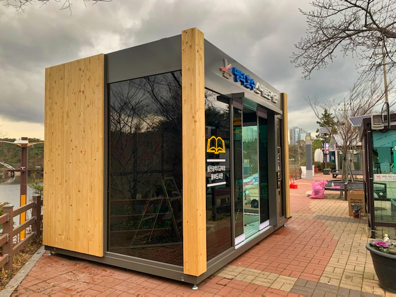 호수 앞에 스마트 도서관이 생겼습니다. 버스 터미널 뒤편 호수가 바로 보이는 장소에 있어 대중교통을 이용하면서 이용하기 편한 장소인 것 같습니다.