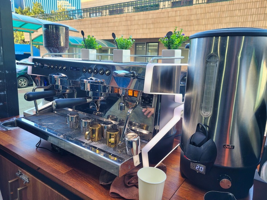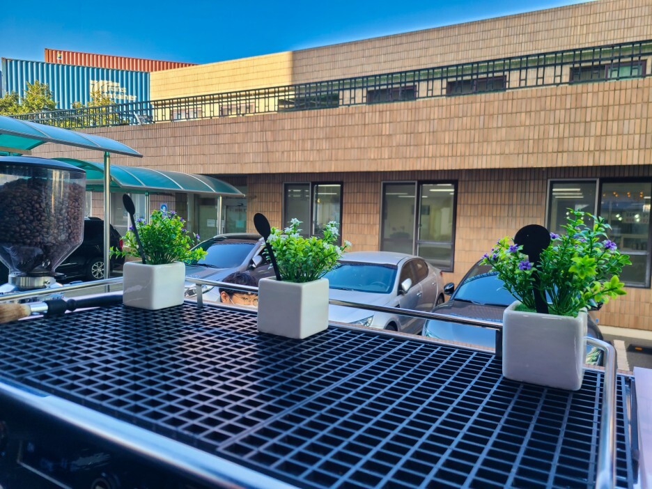 혹시 커피트립 출장 커피차가 바뀐 점 보셨나요~ 새롭게 테이블을 제작하여 2023년 첫 행사에 맞추어 커피차를 진행하였습니다. 기존의 높은 테이블은 커피 케이터링으로 만 진행을 하고 새롭게 디자인하고 높이를 줄인 테이블을 이용하여 행사 진행을 하였습니다.