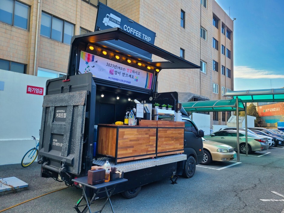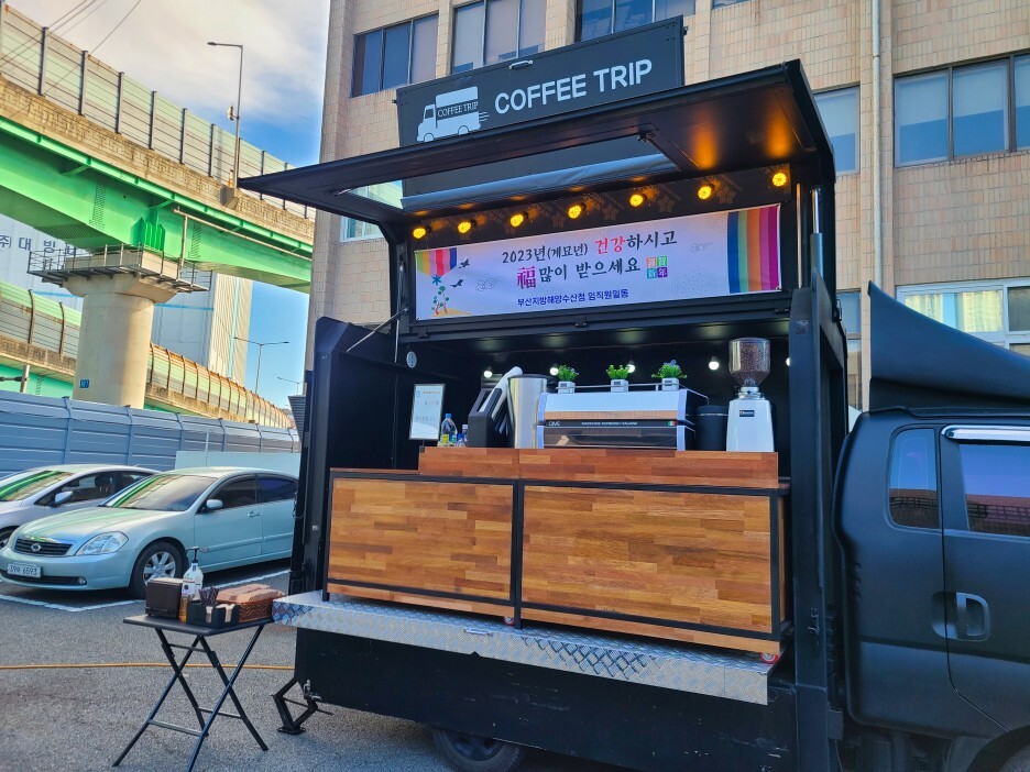 2023년 첫 커피차 부푼 마음과 새해라는 단어가 반기듯 2023년 새해가 밝았습니다. 첫 출장지는 부산지방해양수산청