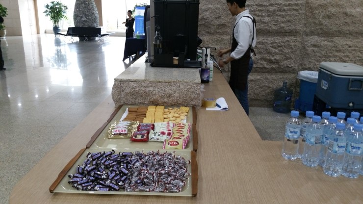 저희가 행사를 진행한 곳은 4층의 대 회의장 옆에 위치한 곳에 바를 이용해서 커피머신및 여러 기기를 셋팅을 하였으며,