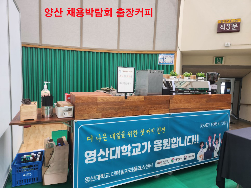 커피트립은 영산대학교 대학일자리 플러스 센터와 함께 홍보 및 음료 제공 행사를 진행하였습니다. 다양한 종류의 음료를 준비해 참석자들에게 제공하였습니다.