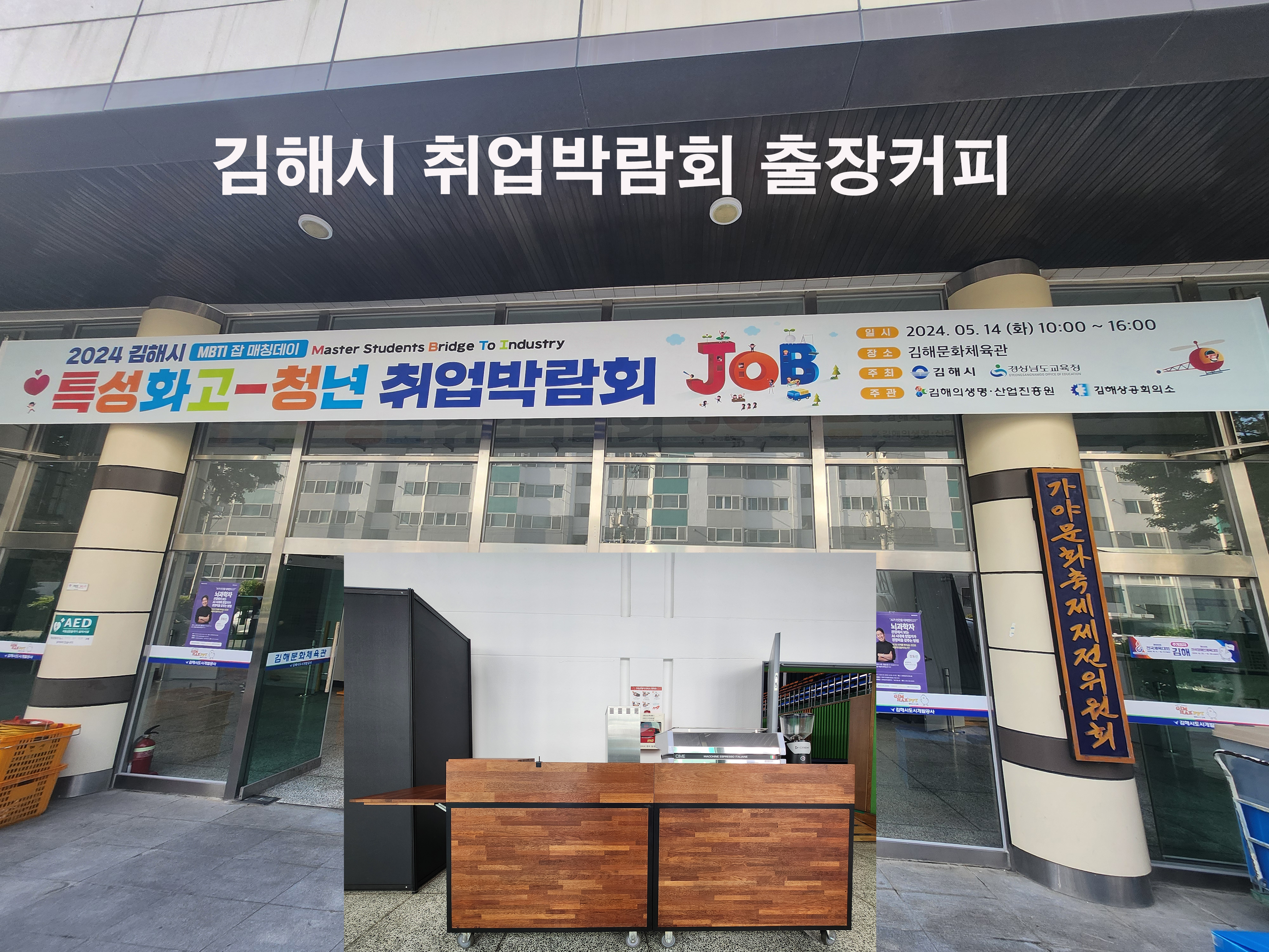 2024년 5월 13일 김해 문화체육관에서 열린 2024 김해시 특성화고 청년 취업 박람회 JOB 커피케이터링 후기를 전해드리려고 합니다.