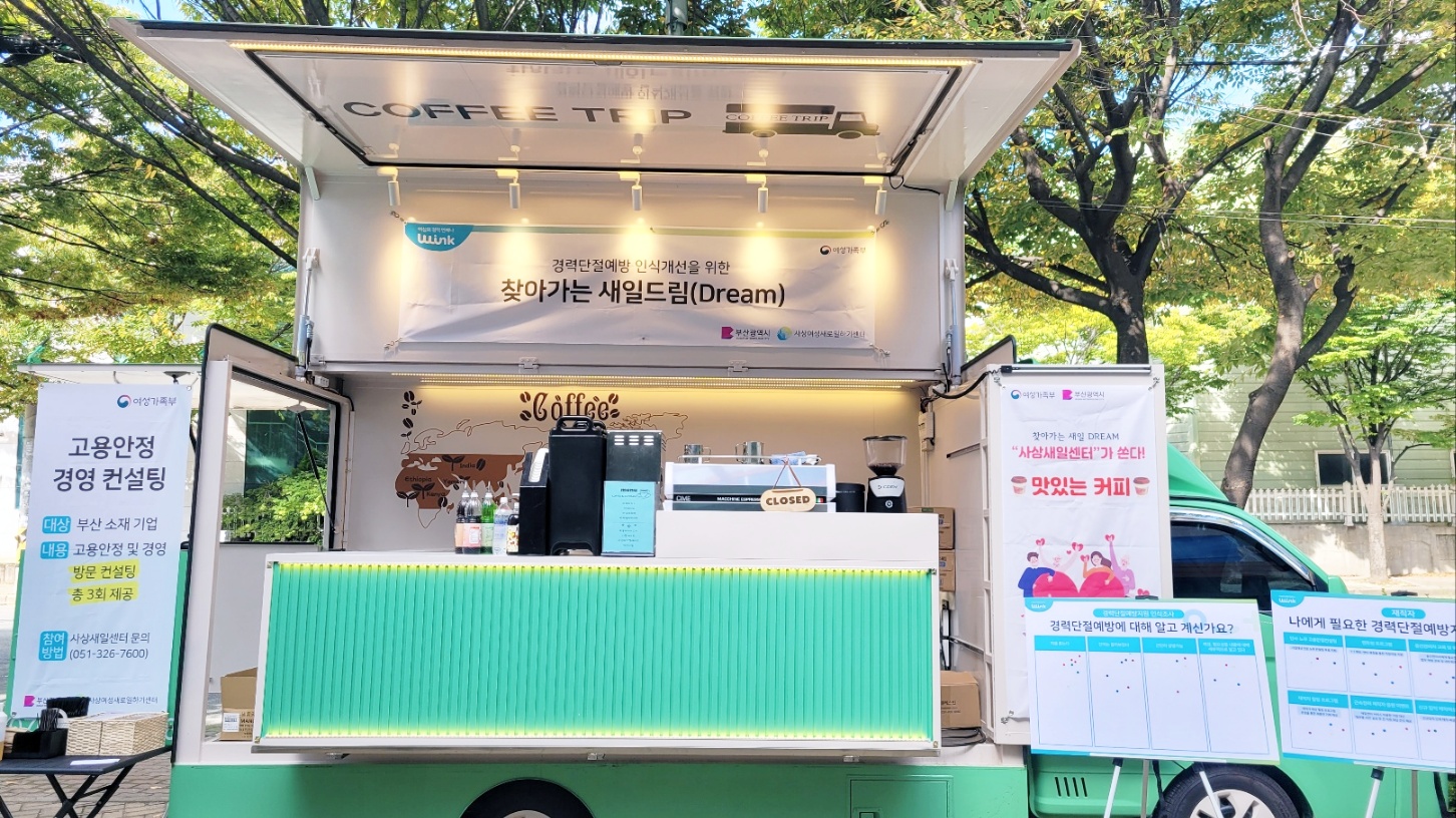 커피트립과 함께한 사상여성새로일하기센터에서의 부산자동차공업협동조합 커피차 행사였어요!