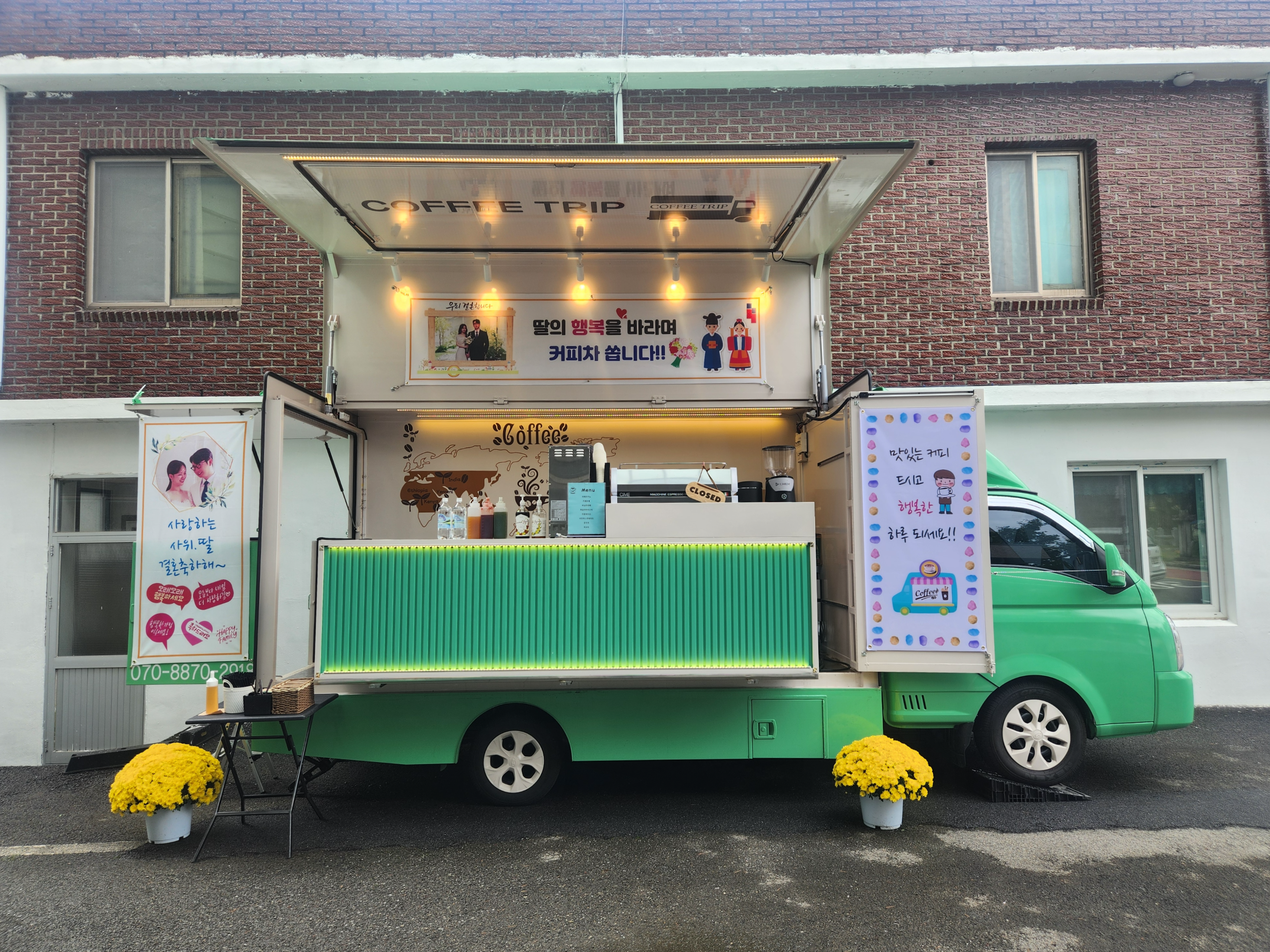 이번 커피차는 교회에서 열린 특별한 결혼식을 위해 운영되었습니다.