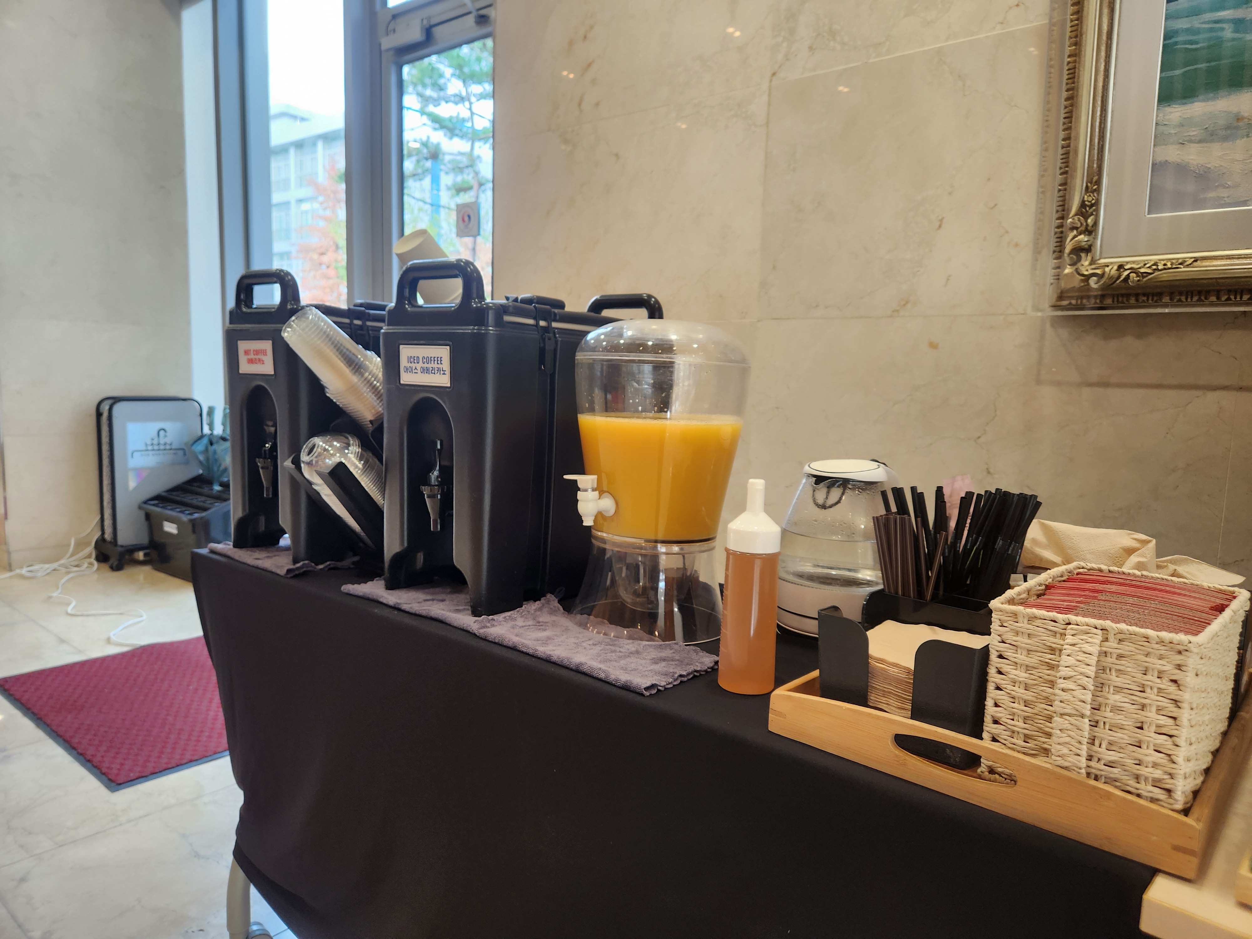 참석자분들께서 가장 많이 찾으신 메뉴는 핫 아메리카노! 겨울철 행사인 만큼 따뜻한 커피 한 잔이 더욱 큰 만족을 드렸습니다. 또한, 커피를 선호하지 않는 분들도 즐길 수 있도록 주스와 자스민티를 준비해 좋은 반응을 얻었어요.