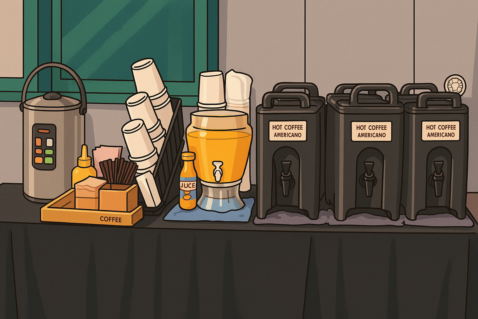- 따뜻한 아메리카노: 행사에 피로를 덜어주는 따뜻하고 깊은 맛의 아메리카노
