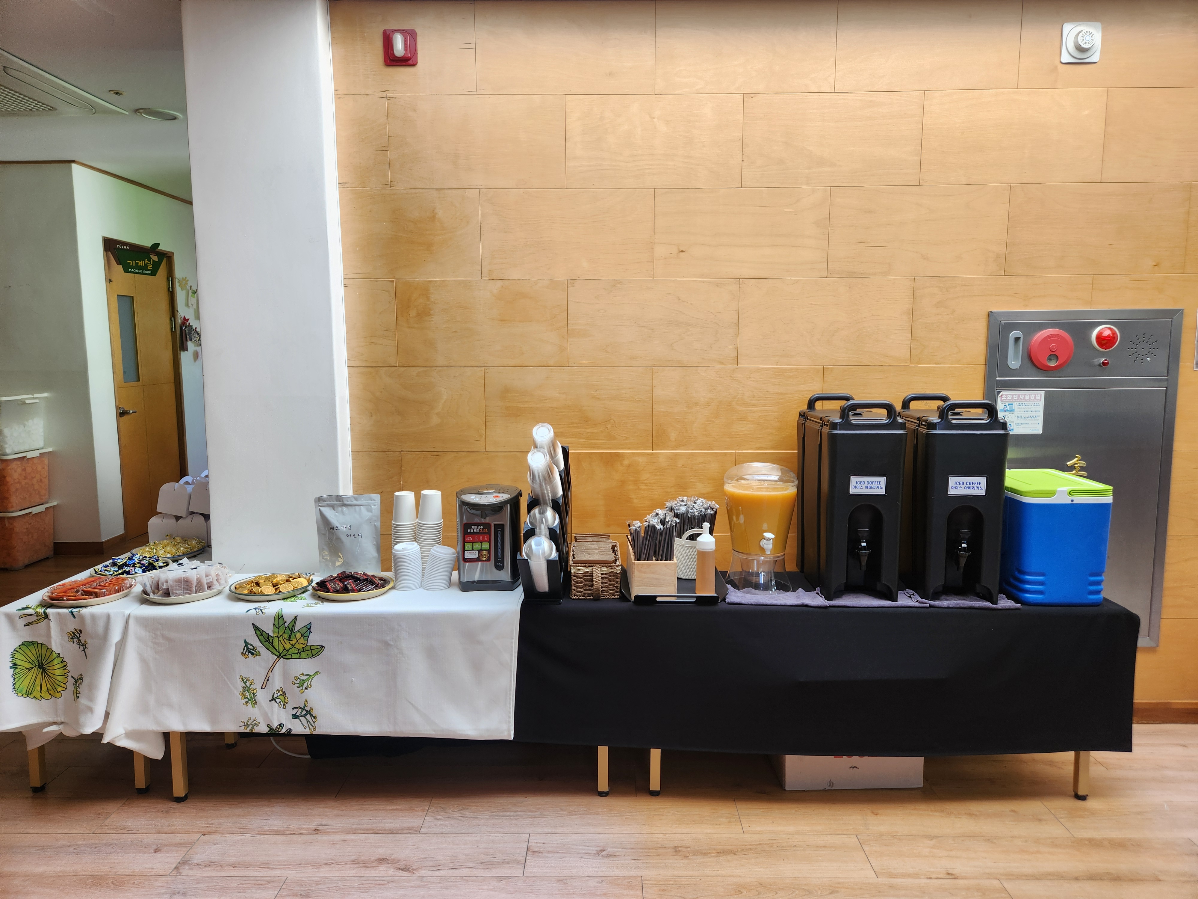 추운 2월 날씨 속에서 따뜻한 아메리카노 한 잔은 학부모님들의 몸을 녹여주었고, 향긋한 허브티는 설명회 내내 차분하고 평화로운 분위기를 만들었습니다. 또한, 상큼한 주스는 참석자들에게 기분 좋은 활력을 더해주며, 행사의 분위기를 더욱 즐겁고 긍정적으로 만들어주었습니다.
