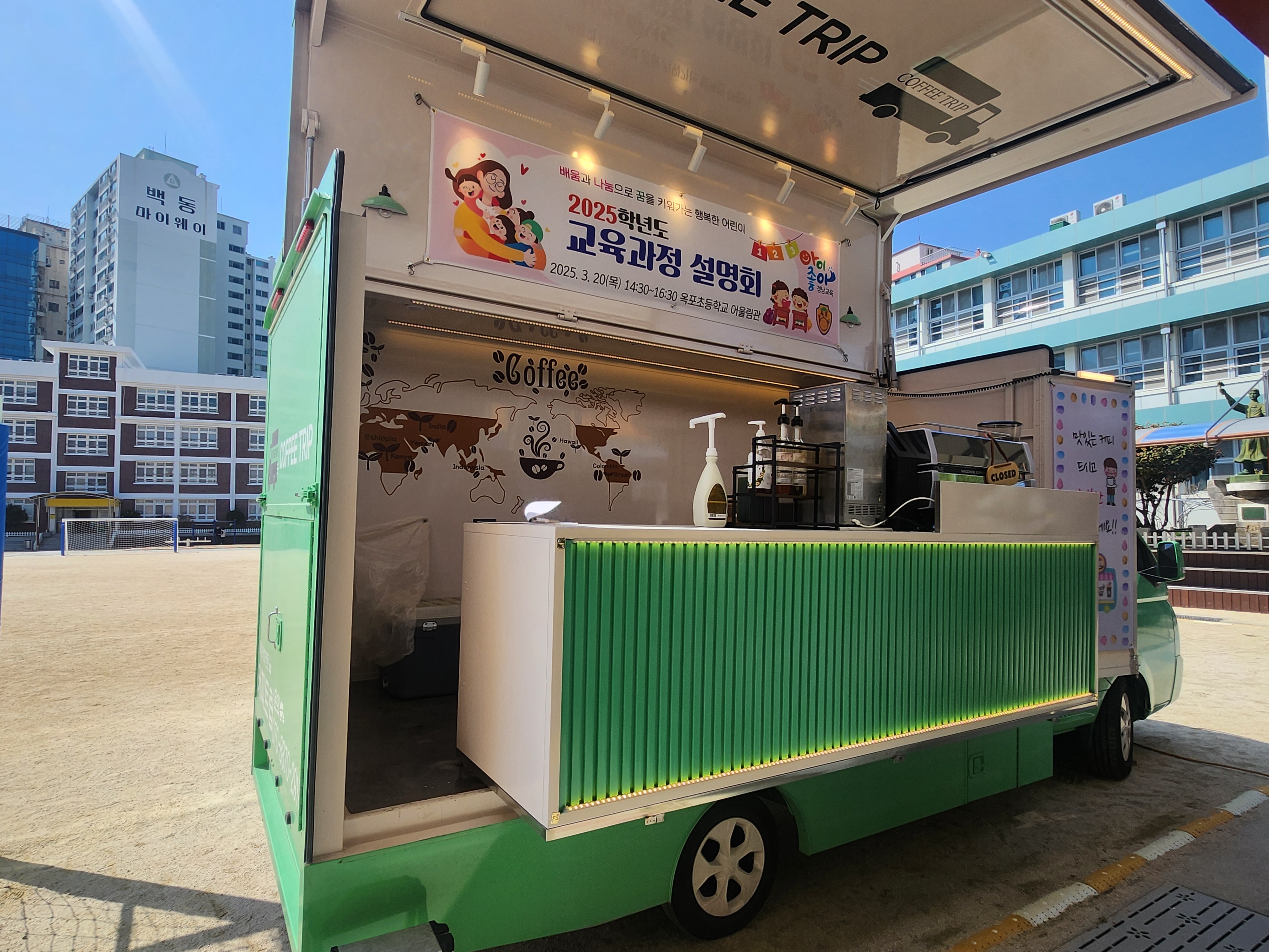 2025년 3월 20일, 거제 옥포초등학교 학교교육과정설명회에서 커피트립의 커피차가 큰 인기! ☕✨