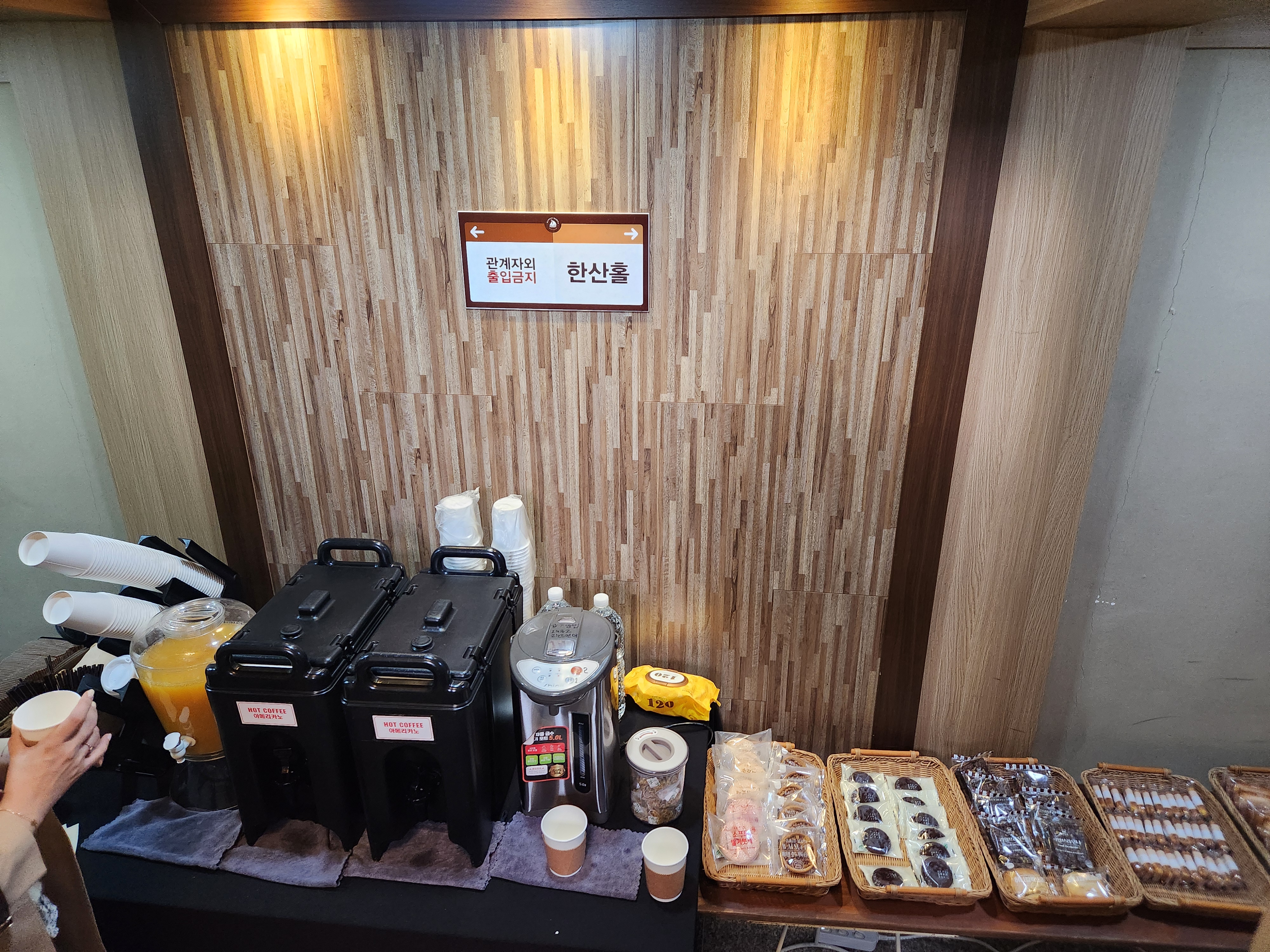 행사는 한산홀 세미나실에서 심포지엄 형식으로 진행되었으며, 약 2시간 동안 이어졌습니다. 부산에서 참석한 분들은 행사 시작 시간에 맞춰 도착했고, 커피트립은 그들의 기다림을 더욱 달콤하게 만들었습니다. 제공된 메뉴는 핫 아메리카노, 허브티, 아이스 음료와 함께 다양한 간식이 준비되어 참석자들에게 달콤하고 향긋한 시간을 선물했습니다. 특히, 커피와 간식의 조화가 참석자들로부터 큰 인기를 끌며 행사 분위기를 더욱 즐겁고 활기차게 만들었습니다.