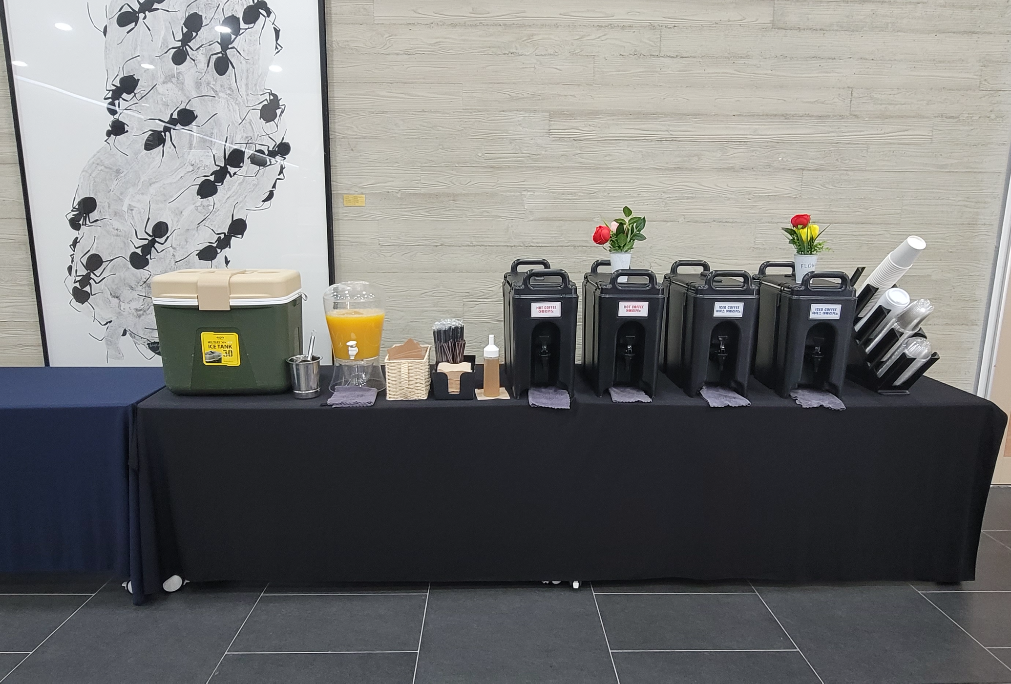 커피트립은 본 행사에 아메리카노 단일 메뉴를 준비하되, 따뜻한 아메리카노와 시원한 아이스 아메리카노 두 가지 옵션을 제공하였습니다. 더불어 커피를 선호하지 않는 분들을 위해 오렌지주스를 함께 준비해, 선택의 폭을 넓힌 균형 있는 구성이 큰 호응을 얻었습니다. 한 가지 메뉴로 단조롭게 구성하기보다는, 기본 커피와 함께 주스를 곁들이는 방식이 참석자들의 만족도를 높여주었고, 커피트립에서는 이러한 구성을 기본으로 적용하고 있습니다.