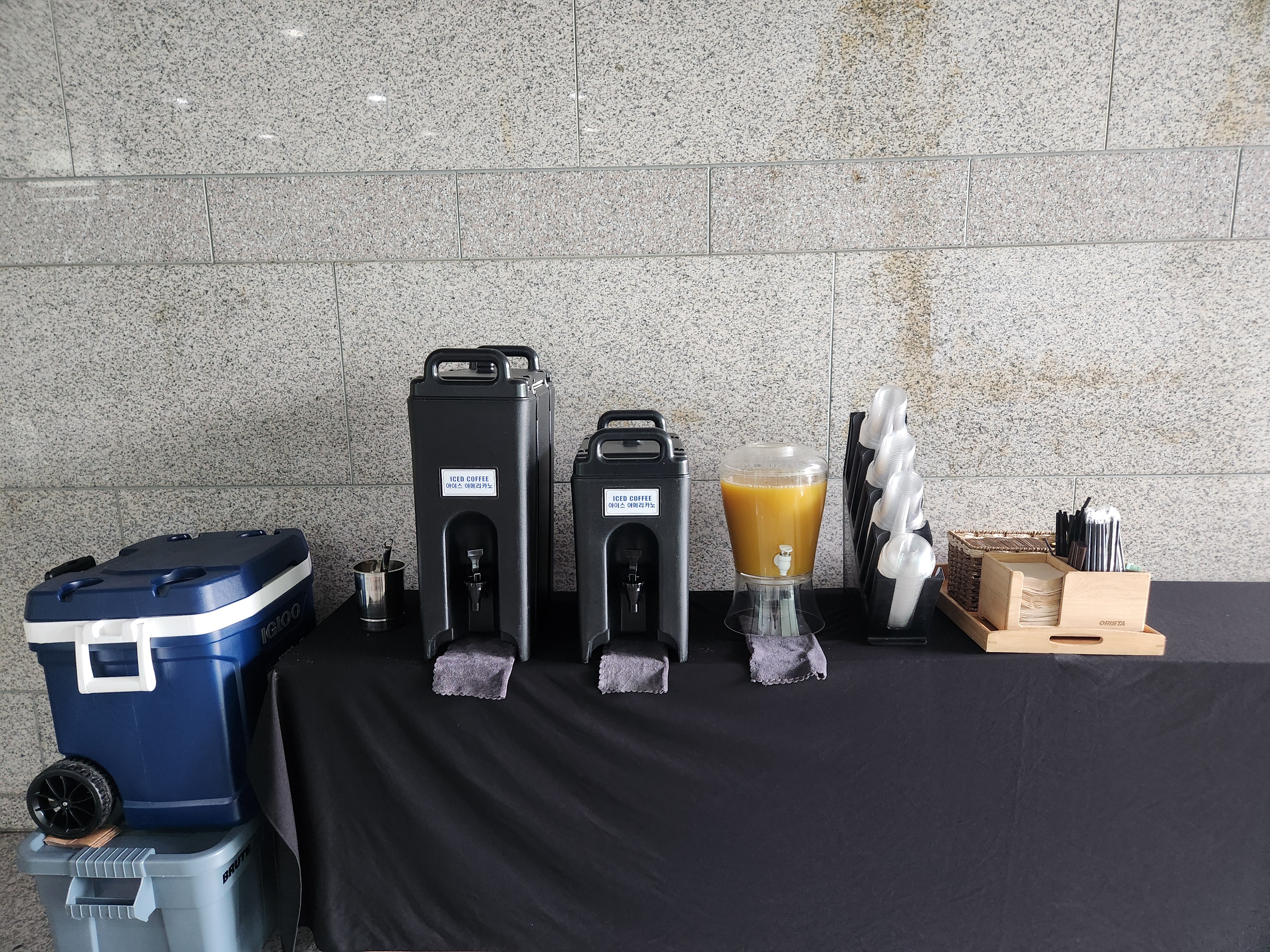 무엇보다 편리한 점은, 행사 주최 측에서 준비하실 것은 테이블 하나면 충분하다는 점입니다. 테이블보부터 컵, 얼음, 장비까지 모두 커피트립에서 셋업해드리며, 행사 종료 후 철수도 깔끔하게 마무리합니다.