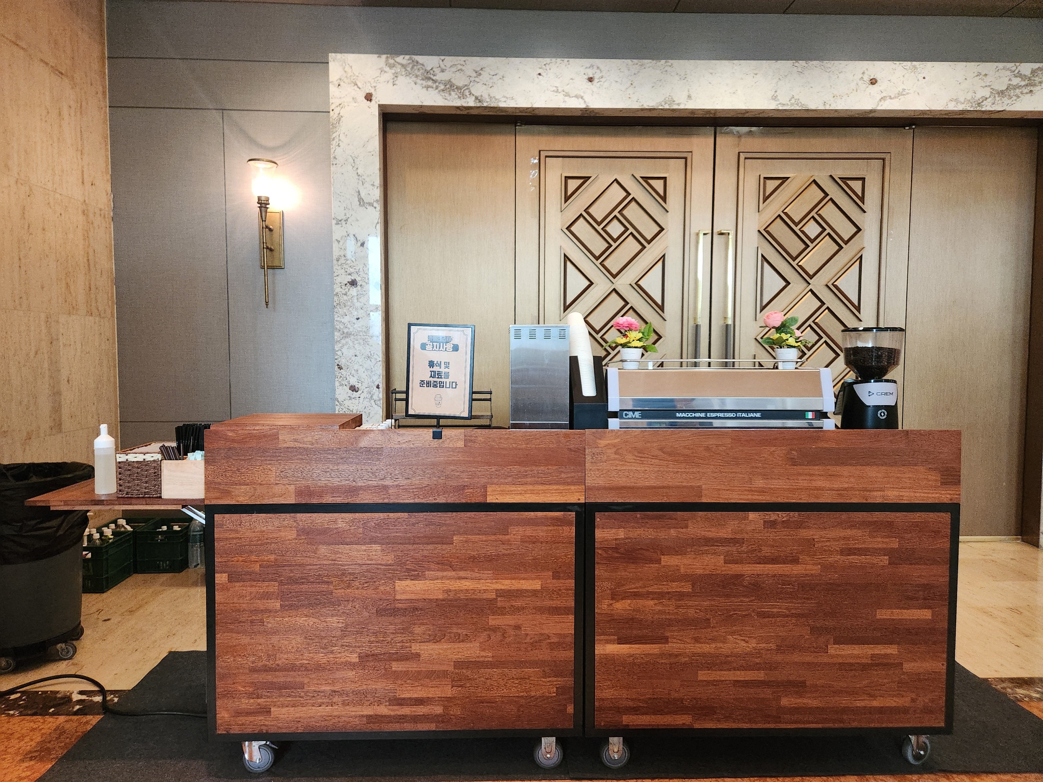 호텔 실내에서 진행되는 커피케이터링은 변수가 많기 때문에 사전 준비가 매우 중요합니다. 외부는 33도를 넘는 폭염, 반면 실내는 강한 냉방으로 인해 따뜻한 음료 수요가 높았습니다. 이처럼 실내 케이터링의 경우, 아이스와 핫 메뉴를 모두 균형 있게 구성하는 것이 핵심입니다.