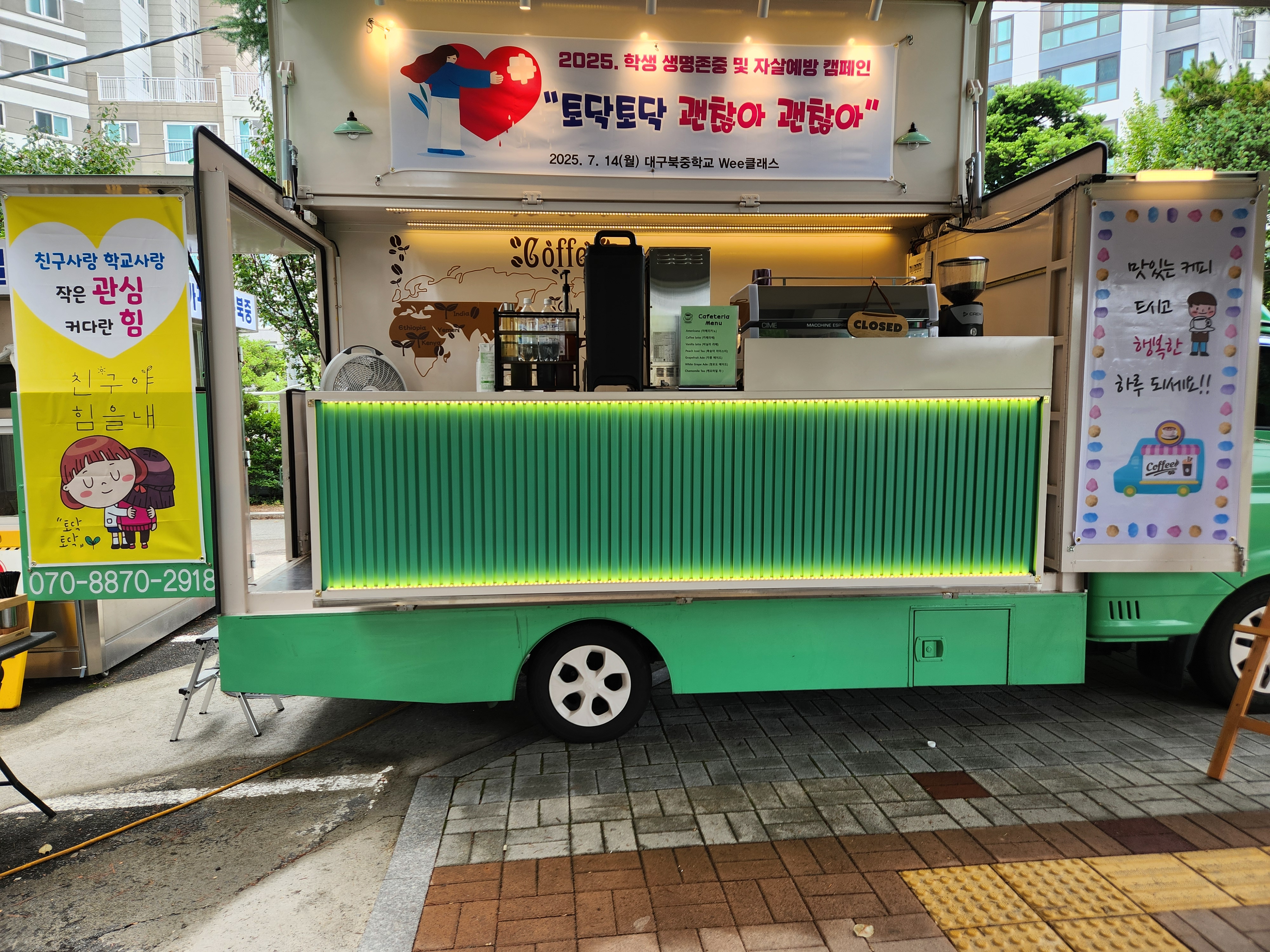 2025년 7월 14일, 대구 북중학교에서 진행된 생명존중 및 자살예방 캠페인 현장에 커피트립 커피차가 따뜻한 위로와 함께 달려갔습니다.