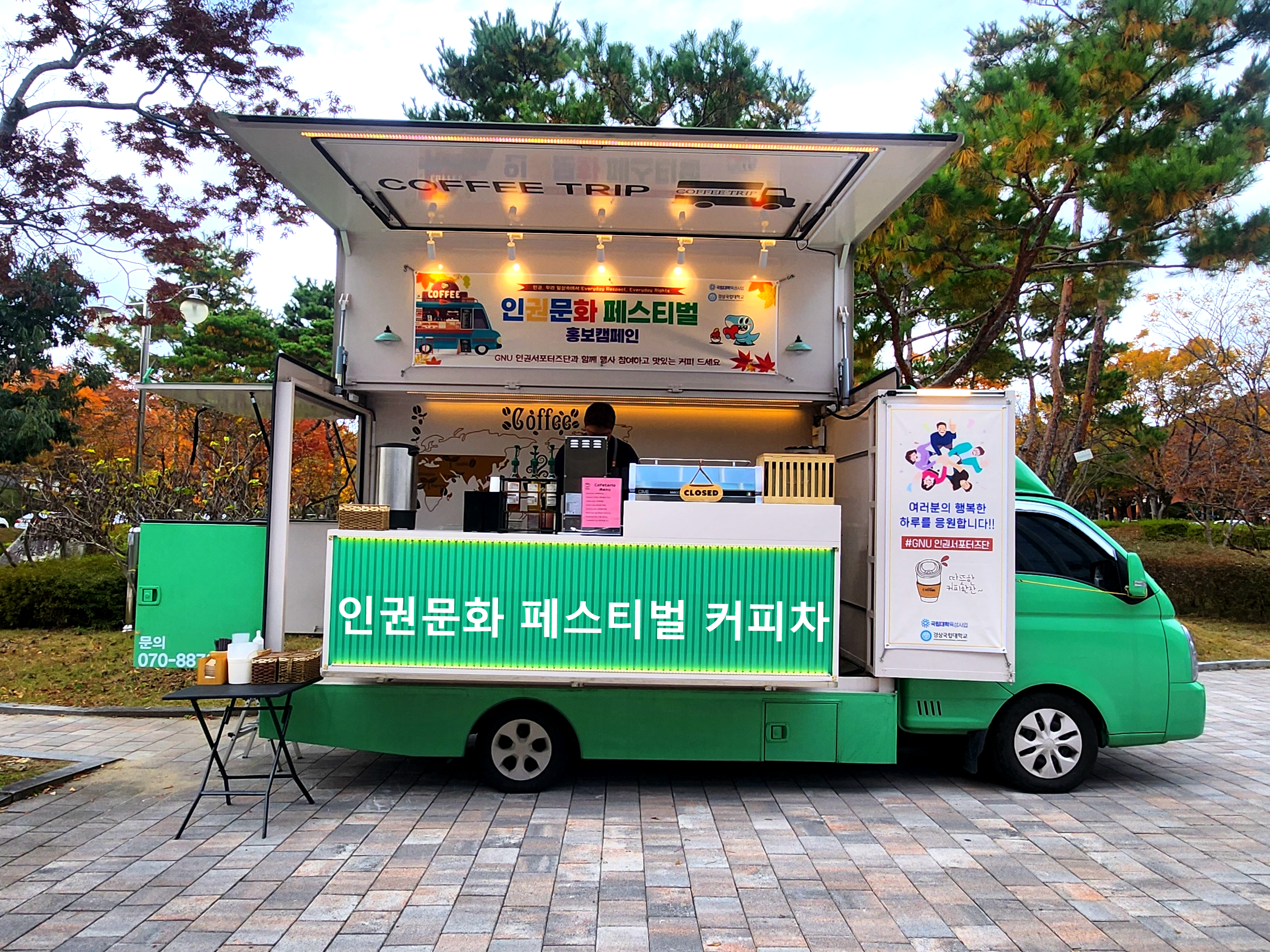 2025년 11월 12일, 국립 경상대학교 캠퍼스에서 열린 대학(원)생 인권 문화페스티벌 현장에 커피트립 커피차가 함께했습니다. 이번 행사는 대학 구성원 모두가 인권의 의미를 되새기고, 서로를 존중하는 건강한 캠퍼스 문화를 만들어 가기 위해 기획된 뜻깊은 프로그램이었습니다. 단순한 축제를 넘어 ‘일상 속 인권 감수성’을 키우는 배움의 장이기도 했습니다.